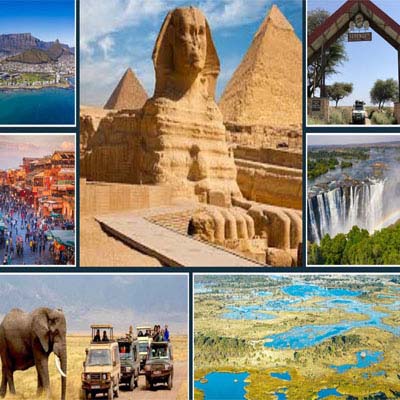 Africa is home to stunning tourist destinations rich in history, nature, and wildlife. The Pyramids of Giza in Egypt stand as ancient wonders, showcasing the brilliance of early civilization. Victoria Falls, on the Zambia-Zimbabwe border, is one of the world's largest and most breathtaking waterfalls. The Serengeti National Park in Tanzania offers incredible safari experiences with diverse wildlife, including the Great Migration. South Africa’s Table Mountain provides panoramic views of Cape Town, while Morocco’s Marrakech enchants visitors with its vibrant souks, palaces, and cultural heritage.